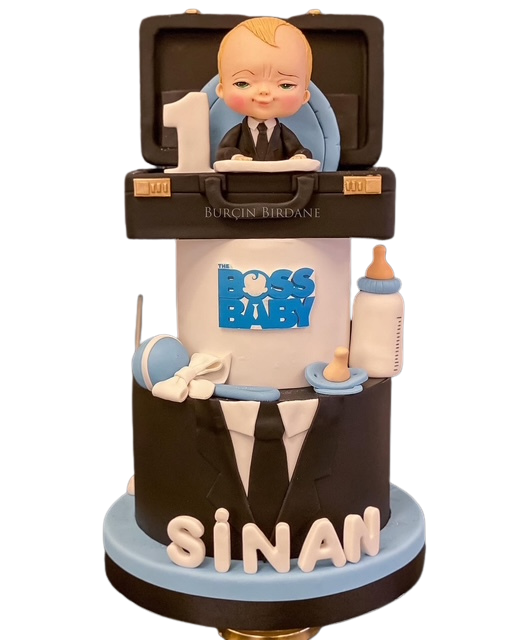 Minik patronlara özel hazırlanan Boss Baby temalı doğum günü pastası, filmdeki "Patron Bebek" karakterini birebir yansıtan detaylarıyla dikkat çeken benzersiz bir tasarımdır. Çantadan çıkan figür, takım elbise detayları, biberon ve aksesuarlarla tamamlanan bu özel butik pasta, 1 yaş ve küçük çocuk doğum günleri için en çok tercih edilen modellerdendir.