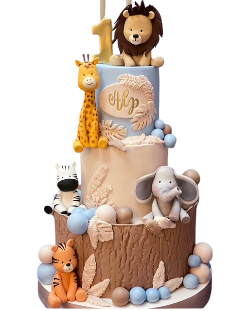 Minik doğum günü kahramanları için özel olarak tasarlanan bu Safari temalı doğum günü pastası, sevimli orman hayvanlarıyla dolu eşsiz bir konsept sunuyor.