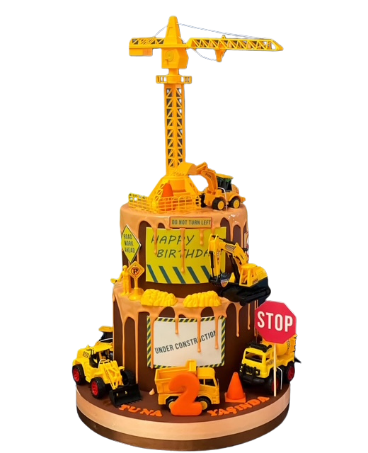 Büyük vinç figürüyle dikkat çeken inşaat temalı iki katlı pasta