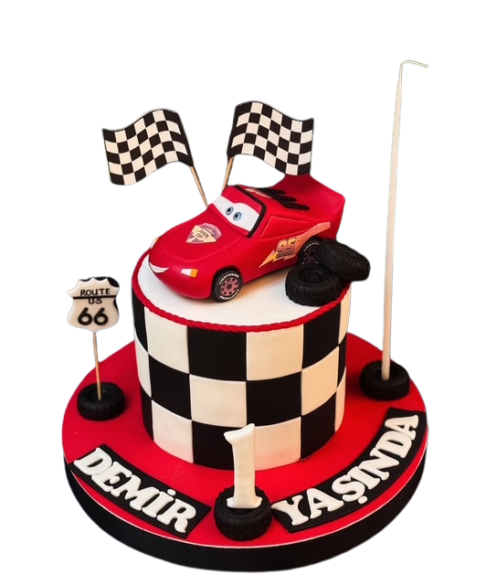 Çocukların favori karakterlerini içeren bu yarış temalı pasta; doğum gününü unutulmaz kılmak isteyen aileler için ideal bir seçimdir. Temaya özel renk uyumu, hareketli tasarım öğeleri ve profesyonel modelleme detaylarıyla fotoğraflarda muhteşem görünür.