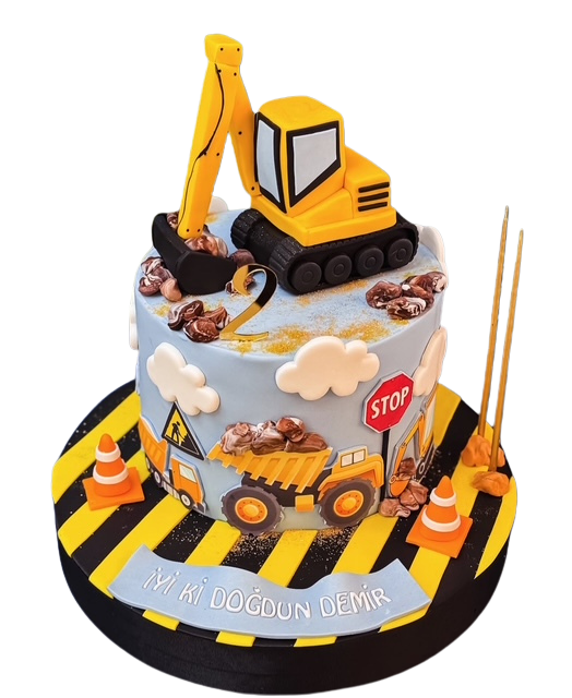 İnşaat ve iş makinesi temalarını seven minikler için özel olarak tasarlanmış bu ekskavatör temalı doğum günü pastası, gerçekçi detayları ve canlı renkleriyle dikkat çeker. Üst bölümde yer alan üç boyutlu ekskavatör figürü, hareketli görünümüyle pastaya enerjik bir hava katar.