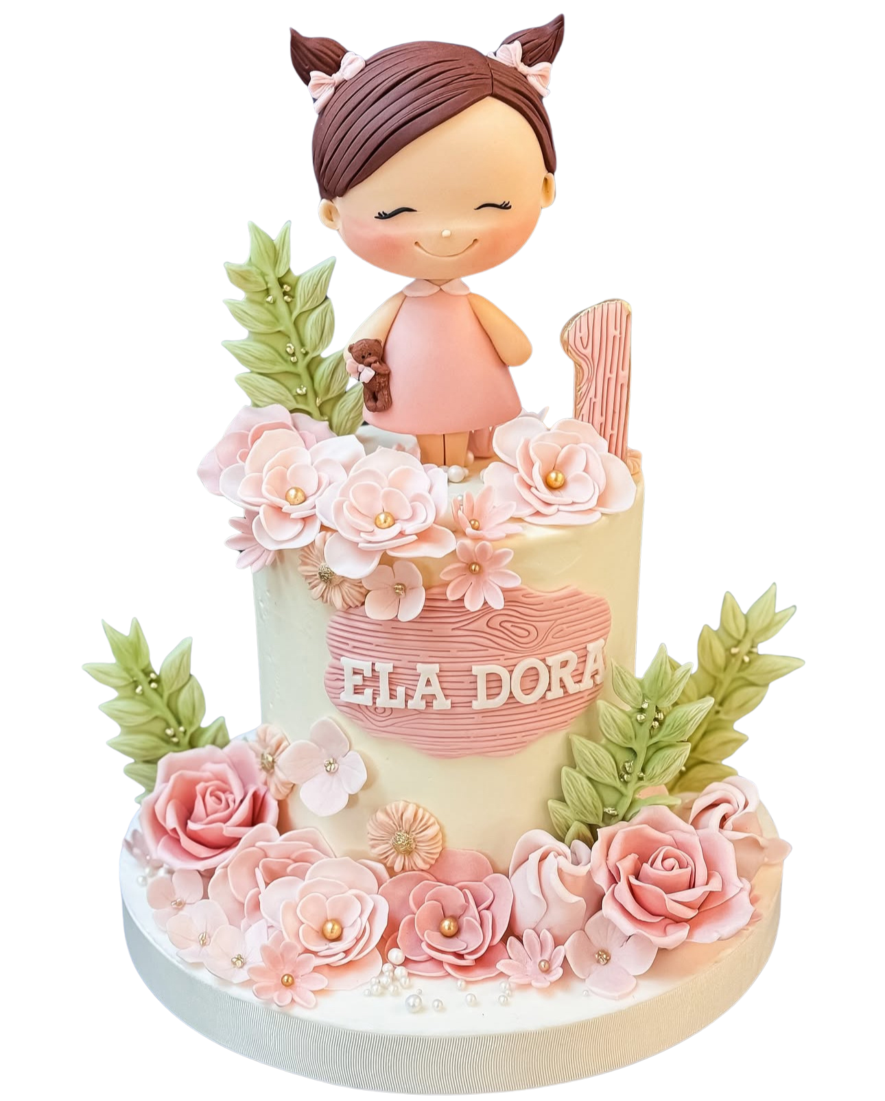Minik prenseslerin ilk yaş kutlamalarına zarif bir dokunuş! Pembe Çiçekli Kız Bebek Pasta, sevimli bebek figürü, pastel tonlardaki çiçekler ve zarif inci detaylarıyla hem göze hem damağa hitap ediyor. Yumuşacık pandispanya katları ve nefis krema dolgusu, bu özel tasarımı lezzet şölenine dönüştürüyor. Tamamen el işçiliğiyle hazırlanan bu pasta, doğum günü kutlamalarına hem şıklık hem de tat katmak için ideal bir seçim.