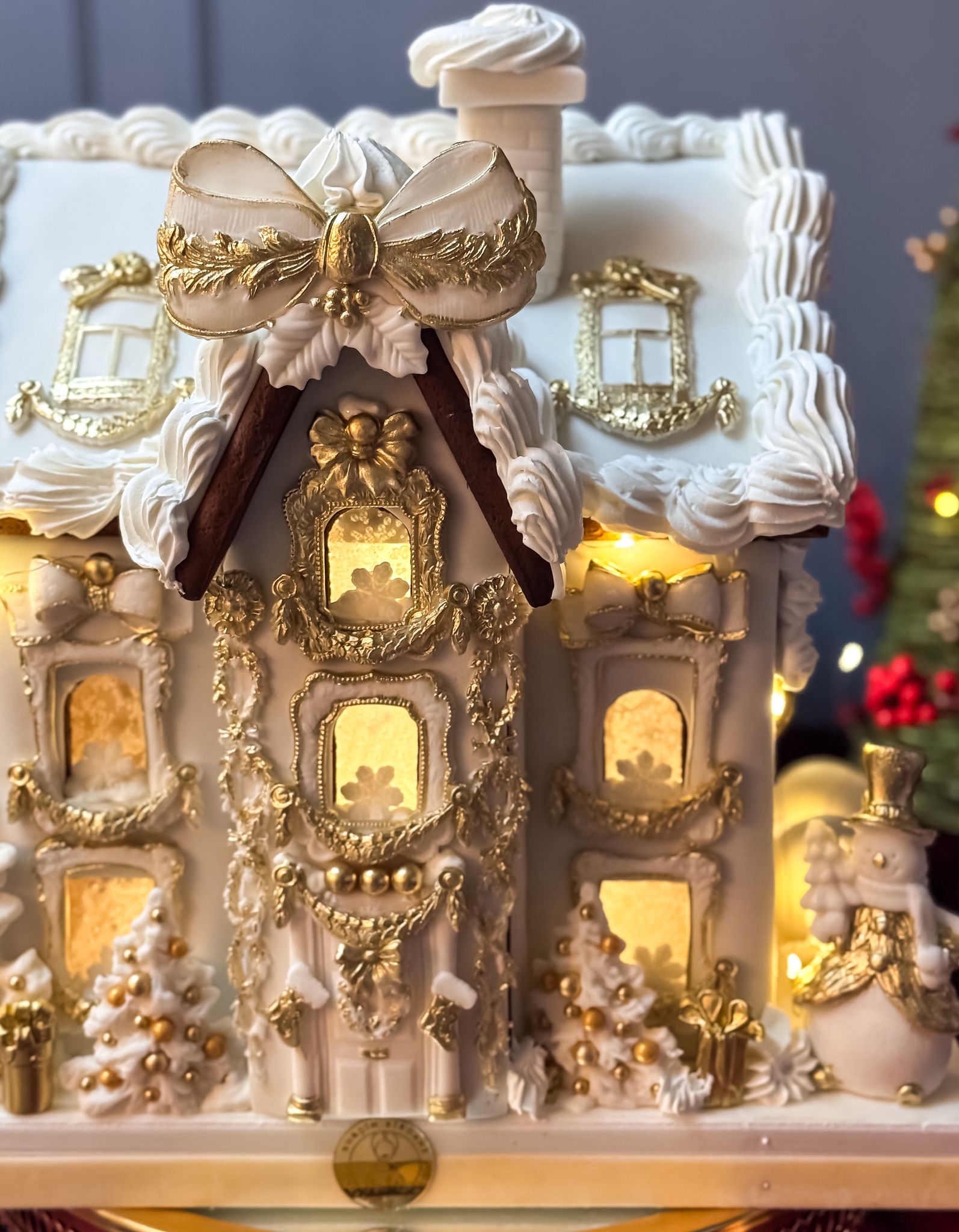 Kurabiye Ev Büyük Boy Altın Varak Süslemeli Işıklı