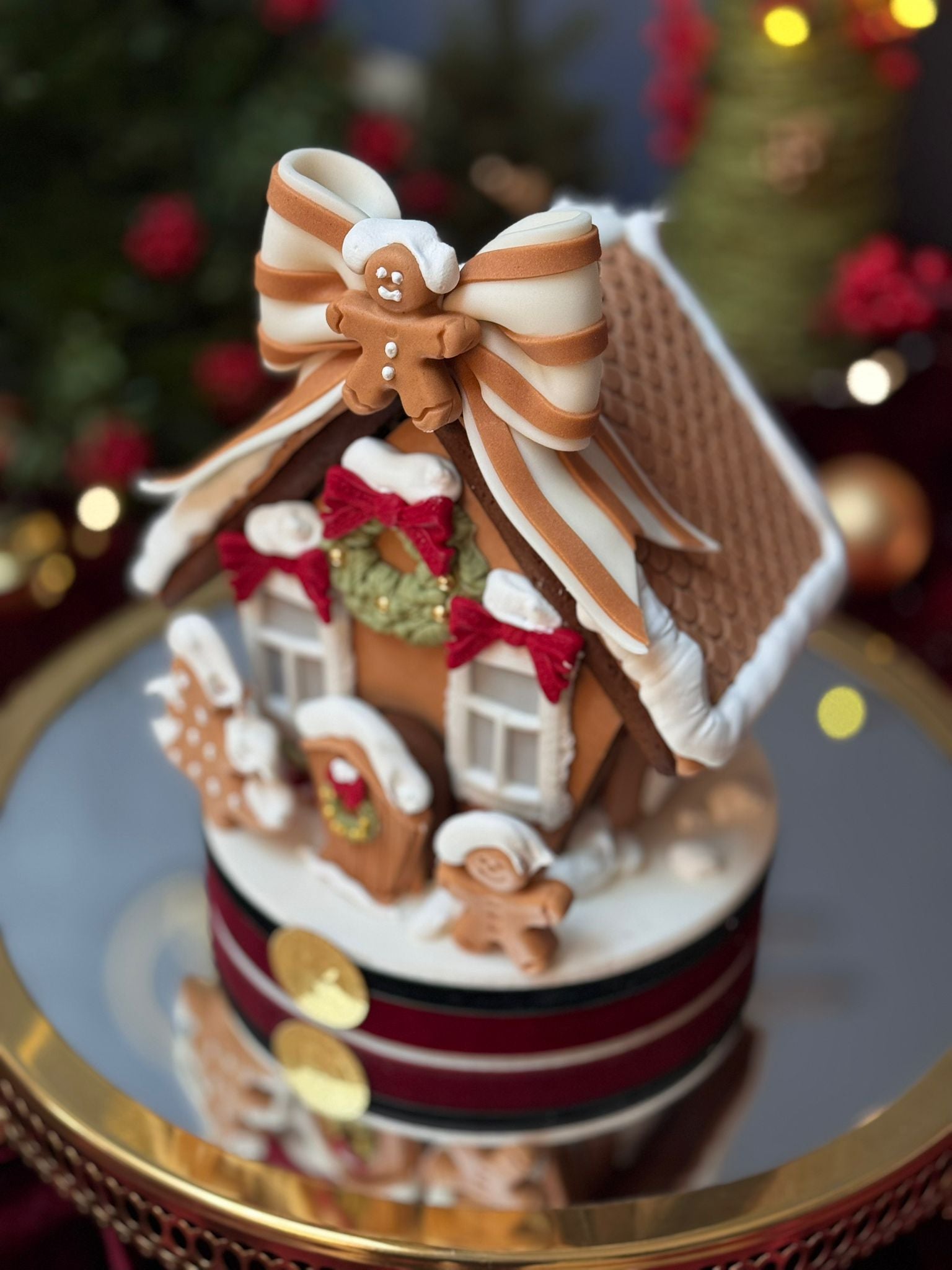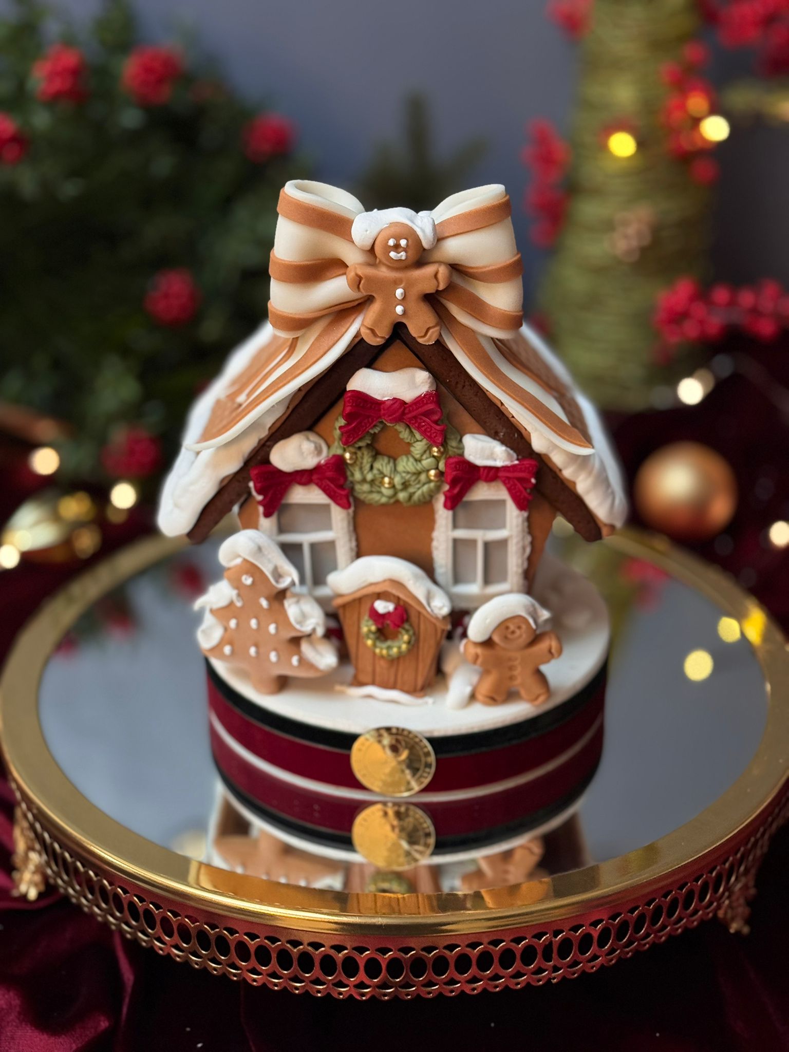 Yeni yıl ruhunu en sıcak haliyle yansıtan bu özel tasarım kurabiye evimiz, el işçiliği ile hazırlanan sevimli detaylarıyla dikkat çeker. Zarif kurdele motifi, küçük gingerbread figürleri, kar efektleri ve yılbaşı süslemeleri ile tamamen el yapımı bir butik çalışma sunar. Özel gün kutlamaları, yılbaşı sofraları ve hediye olarak tercih etmek isteyenler için eşsiz bir seçenek oluşturur.